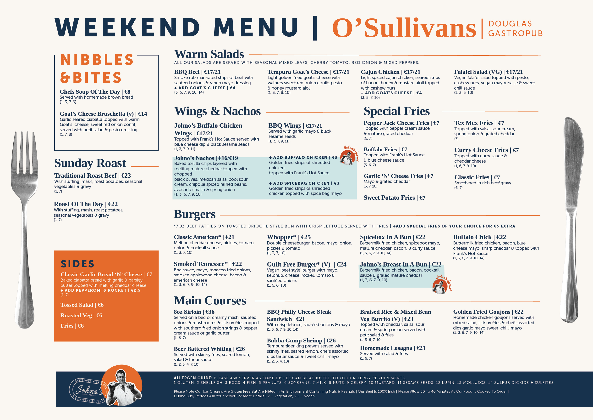Allergen Guide – Please ask your server as some dishes can be adjusted to your allergy requirements